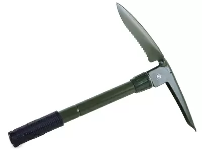 Made of high-quality materials. Can be used as a shovel, pickaxe or saw.
