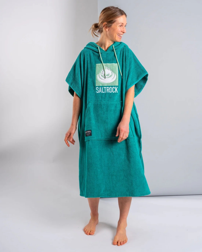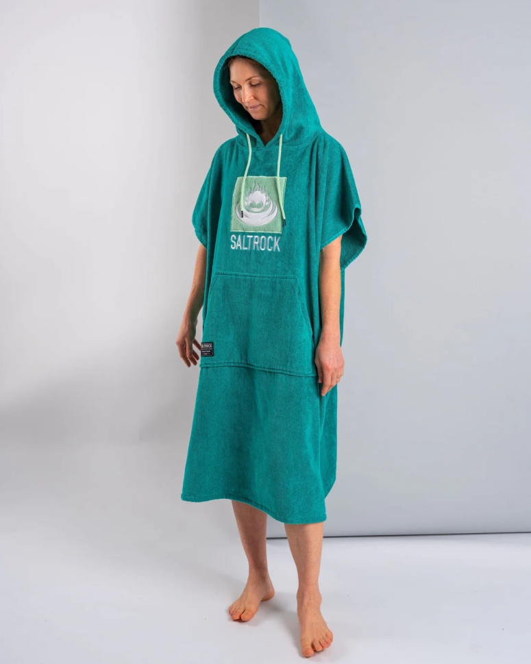 Αλλάξτε και στεγνώστε οπουδήποτε με την υπερ-απορροφητική πετσέτα αλλαγής με το λογότυπο Saltrock Τουρκουάζ - η κλασική, πιο δημοφιλής ρόμπα μας για να σας προστατεύει από τα στοιχεία της φύσης σε όλες τις υδάτινες περιπέτειές σας. Ελαφριά και γρήγορα στεγνώνουσα, αυτό το άνετο απαραίτητο είναι εξαιρετικά ευέλικτο και βολικό. Αυτός ο ρόμπα αλλαγής είναι ιδανικός για σέρφινγκ, kitesurfing, wakeboarding, την παραλία, την πισίνα, τα τρίαθλα και άλλα. Είναι ιδανική για ζωή γύρω από νερό, επιτρέποντάς σας να αλλάζετε μέσα και έξω από το μπικίνι, το μαγιό ή την στολή κατάδυσης και να στεγνώνεστε με ιδιωτικότητα και άνεση. Εκτός από την ευκολία, το απορροφητικό, εξαιρετικά μαλακό υλικό 100% βαμβακερής πετσέτας σημαίνει ότι στεγνώνει γρήγορα και είναι αποτελεσματικό στην απορρόφηση υγρασίας. Οι μοναδικές λεπτομέρειες κάνουν την πετσέτα αλλαγής Saltrock απαράμιλλη στο σχεδιασμό και την ποιότητα.