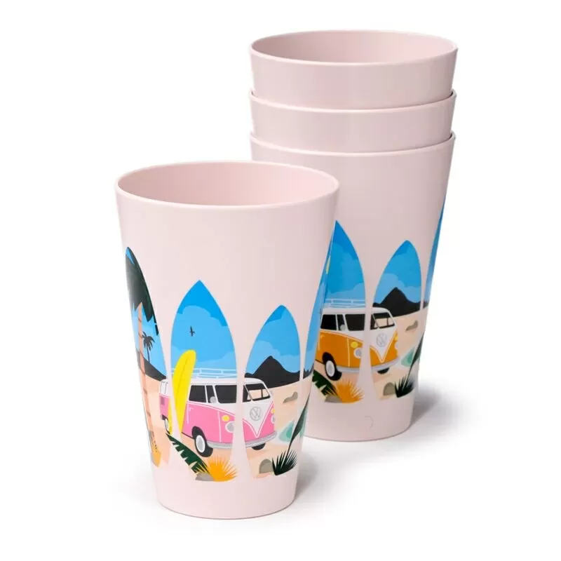 Комплект от 4 чаши за пикник Volkswagen VW T1 Camper Bus Waves are Calling 450мл